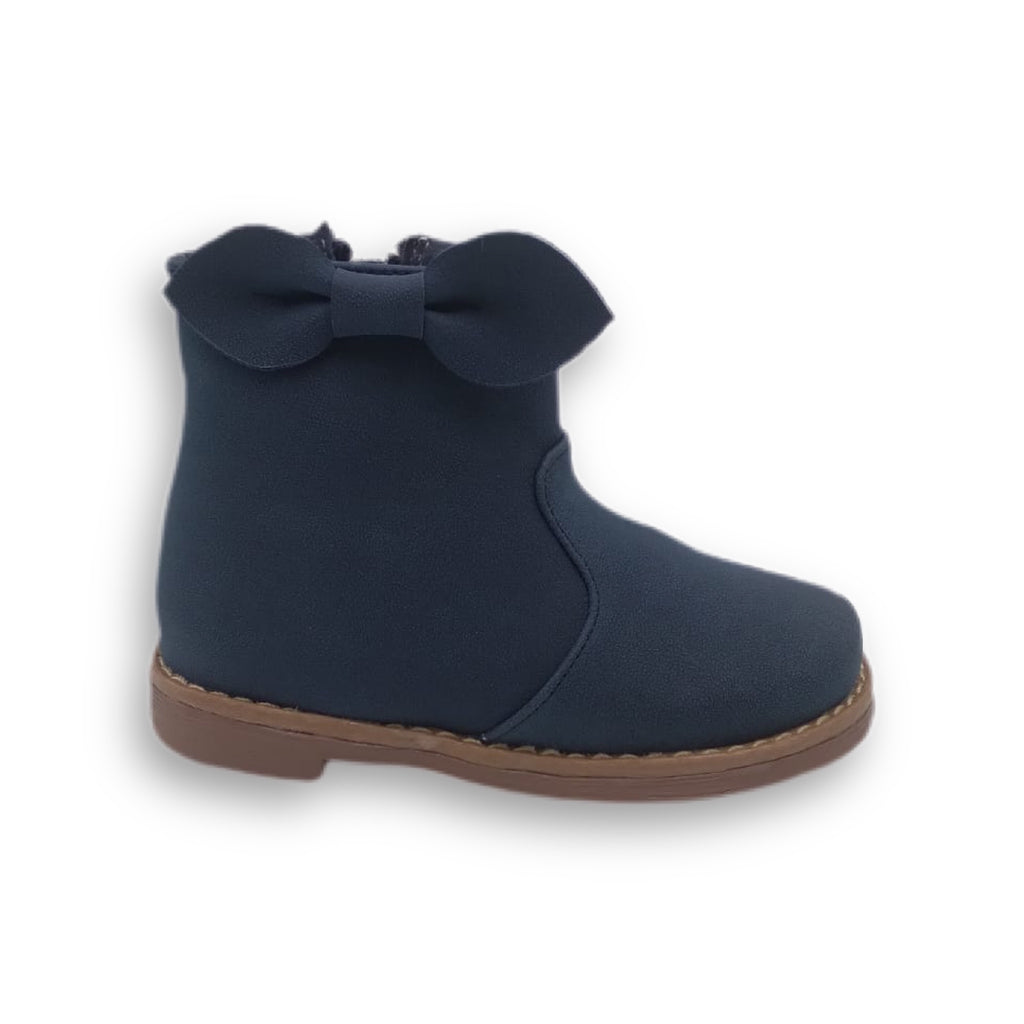 Botin de gamuza. Suela de alta calidad, antiderrapante y muy resistente. Color azul o gris. Adorno de moño al costado. Cierre de zipper. Plantilla ultra comfort.